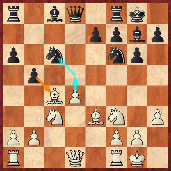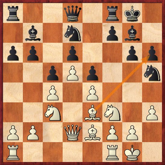 Jupps, da isse! 13.Ld2 Lg6 14.Lg5 Lxd3 15.Dxd3 0-0-0 16.Db3 h6 17.Lh4 Db6 18.Da4 Kb8
