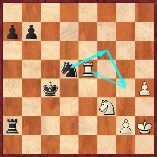 Ta6 42.g4 b5 43.g5 b4 44.h5 b3 45.Sd2+ Kd4 46.Te4+ Kd3 47.Sxb3??